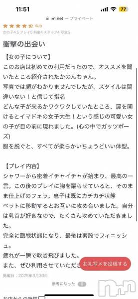 ※判断の難しいコメントは、お店や女の子に判断をゆだねる場合があるため、公開までに時間を頂く場合があります。